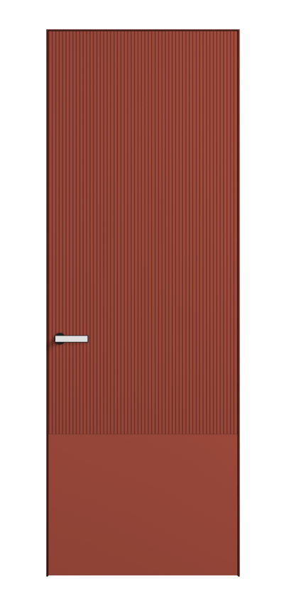 Это полотна с рельефной фрезеровкой. Этот прием делает интерьер объемным, тактильным, вносит интересную текстуру и создает современный образ. Волнистый рельеф может быть выполнен по ламелям из массива дуба в древесных матовых отделках, либо исполнен по натуральному и экологически безопасному материалу — ХДФ, покрытому гладкой эмалью актуальных оттенков.
