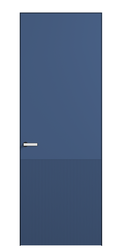 Это полотна с рельефной фрезеровкой. Этот прием делает интерьер объемным, тактильным, вносит интересную текстуру и создает современный образ. Волнистый рельеф может быть выполнен по ламелям из массива дуба в древесных матовых отделках, либо исполнен по натуральному и экологически безопасному материалу — ХДФ, покрытому гладкой эмалью актуальных оттенков.