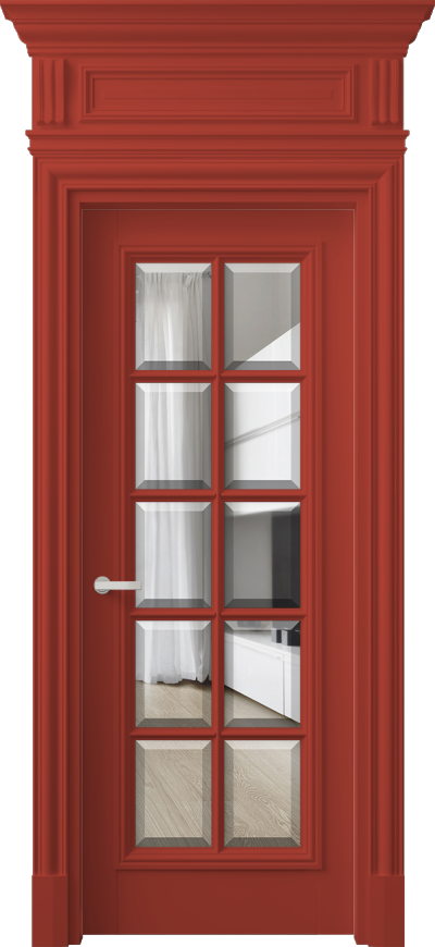 Антик 7310. Кораллово-красный RAL 3016 Прозрачное стекло с фацетом