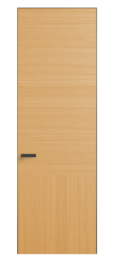 Полотно Рифт в скрытом алюминиевом коробе становится полноценным элементом декора. В коллекции представлено 9 моделей дверей в высоте до 3 метров. Рисунок раскладки шпона варьируется от простого до сложного. «Рубашка» для каждого полотна подбирается вручную по цвету, текстуре и фактуре.