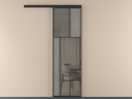 Во всех алюминиевых перегородках, независимо от типа установки, используется компланарный раздвижной механизм, благодаря которому декоративная крышка и полотно находятся в одной плоскости.