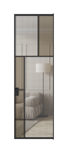 АЛПЛ041.22 Алюминий Черный Декоративное стекло с сеткой "Mesh silver", триплекс, 6 мм + Прозрачное бронзовое стекло, триплекс