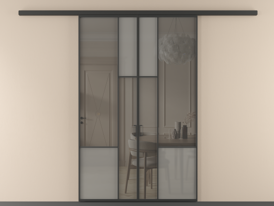 Во всех алюминиевых перегородках, независимо от типа установки, используется компланарный раздвижной механизм, благодаря которому декоративная крышка и полотно находятся в одной плоскости.