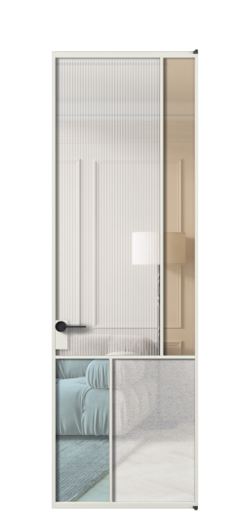 Лаконичный разделительный профиль внутренней раскладки полотна обеспечивает эстетический внешний вид конструкции и идеальную стыковку вставок из стекла.