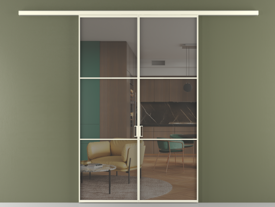 Алюминиевые перегородки имеют единый профиль с алюминиевыми дверьми и легко сочетаются в одном пространстве, не перегружая его. Также их можно комбинировать в интерьере с полотнами из нашего стандартного ассортимента. Помимо этого, система алюминиевых перегородок и дверей координируется со стеновыми панелями Волховец.