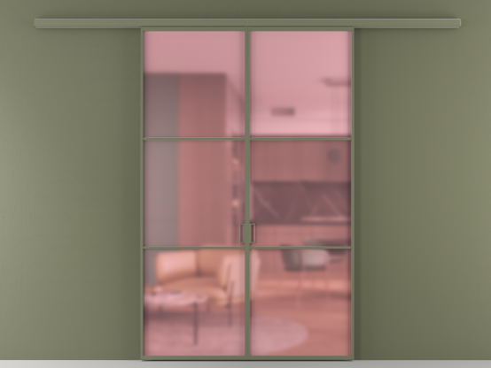 АЛПР 040.03. Алюминий оливковый тёмный Сатинированное розовое стекло, триплекс, 6мм