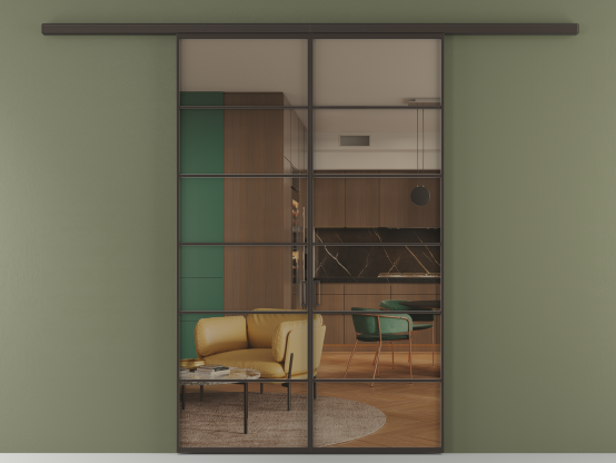 Алюминиевые перегородки имеют единый профиль с алюминиевыми дверьми и легко сочетаются в одном пространстве, не перегружая его. Также их можно комбинировать в интерьере с полотнами из нашего стандартного ассортимента. Помимо этого, система алюминиевых перегородок и дверей координируется со стеновыми панелями Волховец.