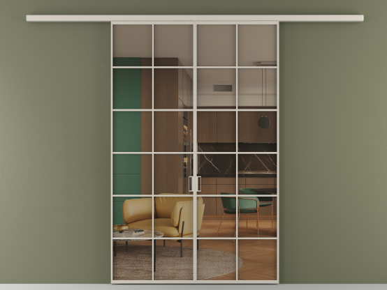 Алюминиевые перегородки имеют единый профиль с алюминиевыми дверьми и легко сочетаются в одном пространстве, не перегружая его. Также их можно комбинировать в интерьере с полотнами из нашего стандартного ассортимента. Помимо этого, система алюминиевых перегородок и дверей координируется со стеновыми панелями Волховец.