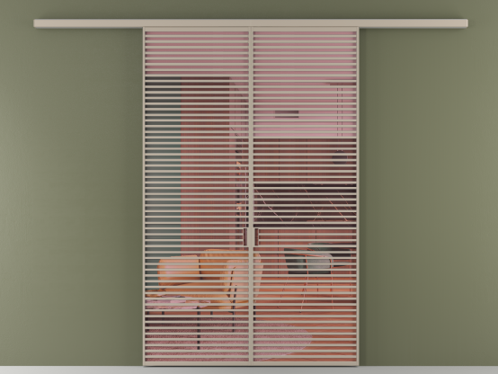 Дополнительно на раздвижную двустворчатую перегородку вдоль стены и четырёхстворчатую перегородку внутри проёма с двумя неподвижным полотнами можно установить механизм синхронного открывания — при открывании одной створки, вторая открывается автоматически.
