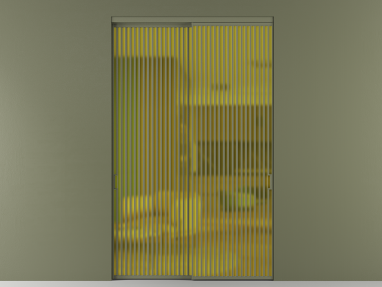 Дополнительно на раздвижную двустворчатую перегородку вдоль стены и четырёхстворчатую перегородку внутри проёма с двумя неподвижным полотнами можно установить механизм синхронного открывания — при открывании одной створки, вторая открывается автоматически.