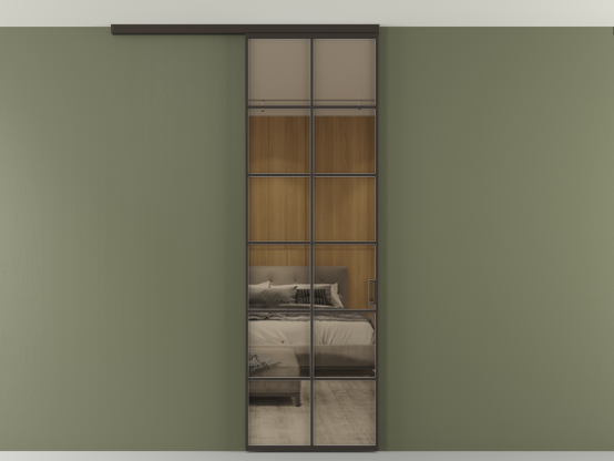 Во всех алюминиевых перегородках, независимо от типа установки, используется компланарный раздвижной механизм, благодаря которому декоративная крышка и полотно находятся в одной плоскости.