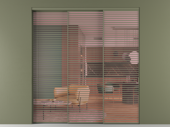 Перегородка Formato внутри проёма 3 створки с синхронным механизмом
