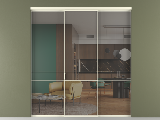Алюминиевые перегородки имеют единый профиль с алюминиевыми дверьми и легко сочетаются в одном пространстве, не перегружая его. Также их можно комбинировать в интерьере с полотнами из нашего стандартного ассортимента. Помимо этого, система алюминиевых перегородок и дверей координируется со стеновыми панелями Волховец.