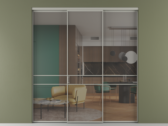 Алюминиевые перегородки имеют единый профиль с алюминиевыми дверьми и легко сочетаются в одном пространстве, не перегружая его. Также их можно комбинировать в интерьере с полотнами из нашего стандартного ассортимента. Помимо этого, система алюминиевых перегородок и дверей координируется со стеновыми панелями Волховец.