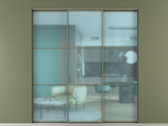 АЛПР 040.03. Алюминий оливковый тёмный Сатинированное голубое стекло, триплекс, 6мм