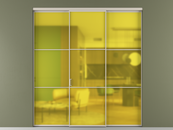 АЛПР 040.03. Алюминий светло-бежевый Сатинированное жёлтое стекло, триплекс, 6мм