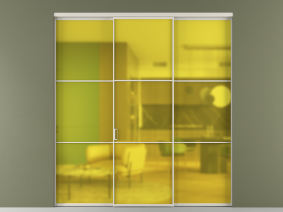 АЛПР 040.03. Алюминий облачно-серый Сатинированное жёлтое стекло, триплекс, 6мм