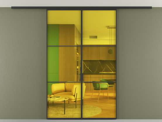 Алюминиевые перегородки имеют единый профиль с алюминиевыми дверьми и легко сочетаются в одном пространстве, не перегружая его. Также их можно комбинировать в интерьере с полотнами из нашего стандартного ассортимента. Помимо этого, система алюминиевых перегородок и дверей координируется со стеновыми панелями Волховец.