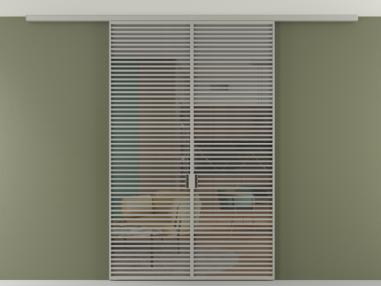 Во всех алюминиевых перегородках, независимо от типа установки, используется компланарный раздвижной механизм, благодаря которому декоративная крышка и полотно находятся в одной плоскости.