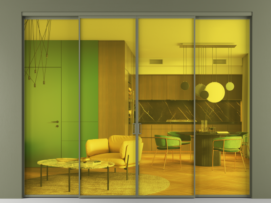 Конструкция, выполненная из алюминия, получается прочной, но в то же время лёгкой и лаконичной, а большой выбор вставок из стекла с различными эффектами позволяет создавать разнообразные решения в интерьере и варьировать освещённость.