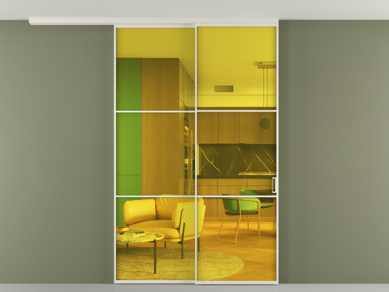 Алюминиевые перегородки имеют единый профиль с алюминиевыми дверьми и легко сочетаются в одном пространстве, не перегружая его. Также их можно комбинировать в интерьере с полотнами из нашего стандартного ассортимента. Помимо этого, система алюминиевых перегородок и дверей координируется со стеновыми панелями Волховец.