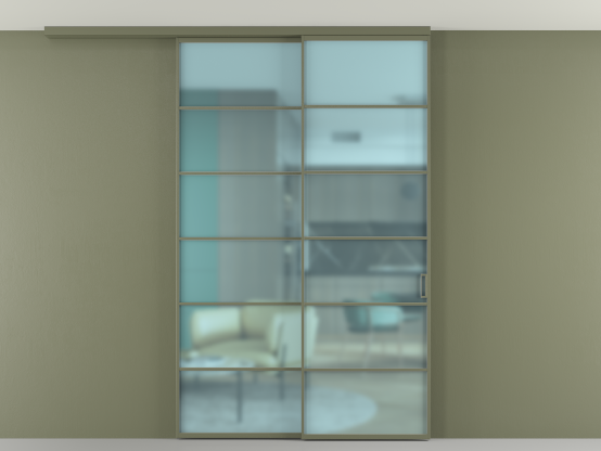 АЛПР 040.04. Алюминий оливковый тёмный Сатинированное голубое стекло, триплекс, 6мм