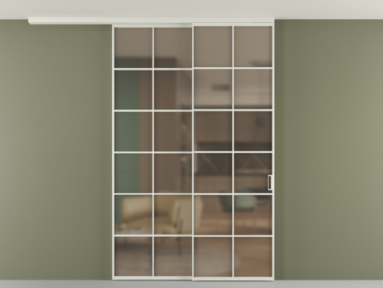 Дополнительно на раздвижную двустворчатую перегородку вдоль стены и четырёхстворчатую перегородку внутри проёма с двумя неподвижным полотнами можно установить механизм синхронного открывания — при открывании одной створки, вторая открывается автоматически.
