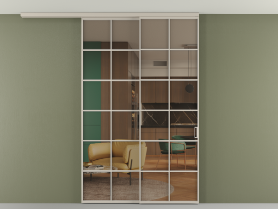 Алюминиевые перегородки имеют единый профиль с алюминиевыми дверьми и легко сочетаются в одном пространстве, не перегружая его. Также их можно комбинировать в интерьере с полотнами из нашего стандартного ассортимента. Помимо этого, система алюминиевых перегородок и дверей координируется со стеновыми панелями Волховец.