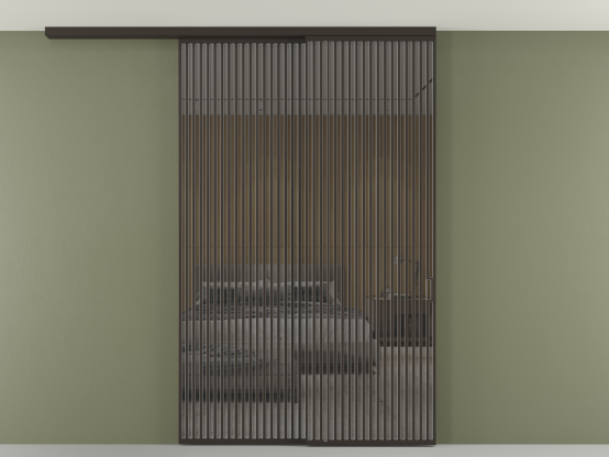 Во всех алюминиевых перегородках, независимо от типа установки, используется компланарный раздвижной механизм, благодаря которому декоративная крышка и полотно находятся в одной плоскости.