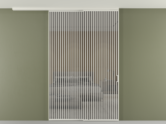Перегородка Формато вдоль стены на потолок 2 створки с синхронным механизмом