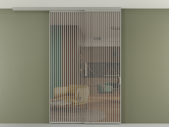Дополнительно на раздвижную двустворчатую перегородку вдоль стены и четырёхстворчатую перегородку внутри проёма с двумя неподвижным полотнами можно установить механизм синхронного открывания — при открывании одной створки, вторая открывается автоматически.
