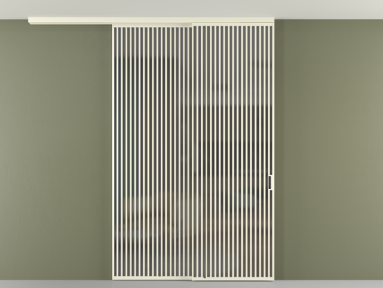 Дополнительно на раздвижную двустворчатую перегородку вдоль стены и четырёхстворчатую перегородку внутри проёма с двумя неподвижным полотнами можно установить механизм синхронного открывания — при открывании одной створки, вторая открывается автоматически.