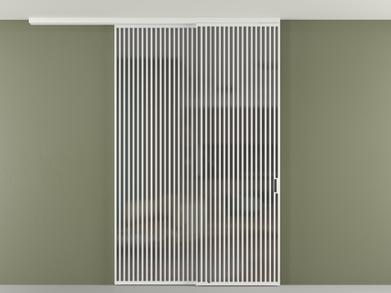 Перегородка Формато вдоль стены на потолок 2 створки с синхронным механизмом