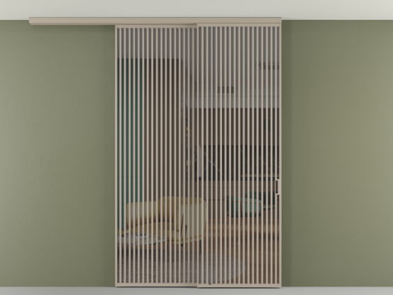 Дополнительно на раздвижную двустворчатую перегородку вдоль стены и четырёхстворчатую перегородку внутри проёма с двумя неподвижным полотнами можно установить механизм синхронного открывания — при открывании одной створки, вторая открывается автоматически.