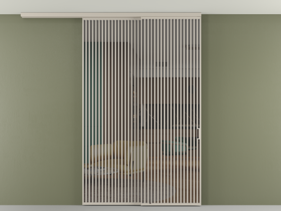 Дополнительно на раздвижную двустворчатую перегородку вдоль стены и четырёхстворчатую перегородку внутри проёма с двумя неподвижным полотнами можно установить механизм синхронного открывания — при открывании одной створки, вторая открывается автоматически.