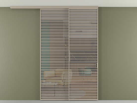 Дополнительно на раздвижную двустворчатую перегородку вдоль стены и четырёхстворчатую перегородку внутри проёма с двумя неподвижным полотнами можно установить механизм синхронного открывания — при открывании одной створки, вторая открывается автоматически.