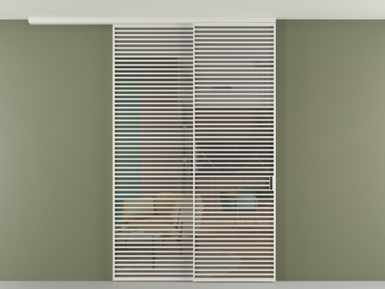 Перегородка Формато вдоль стены на потолок 2 створки с синхронным механизмом