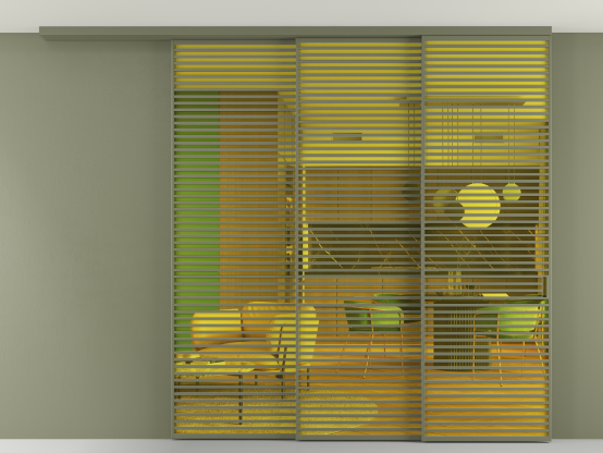 Во всех алюминиевых перегородках, независимо от типа установки, используется компланарный раздвижной механизм, благодаря которому декоративная крышка и полотно находятся в одной плоскости.