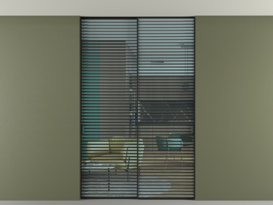 Во всех алюминиевых перегородках, независимо от типа установки, используется компланарный раздвижной механизм, благодаря которому декоративная крышка и полотно находятся в одной плоскости.