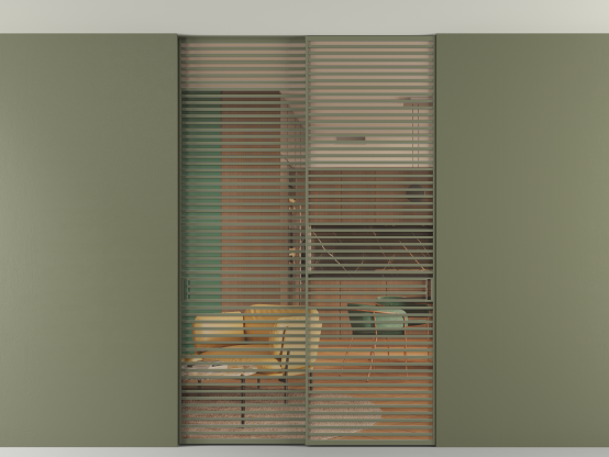 Алюминиевые перегородки имеют единый профиль с алюминиевыми дверьми и легко сочетаются в одном пространстве, не перегружая его. Также их можно комбинировать в интерьере с полотнами из нашего стандартного ассортимента. Помимо этого, система алюминиевых перегородок и дверей координируется со стеновыми панелями Волховец.