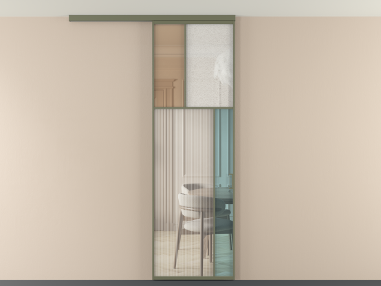 Во всех алюминиевых перегородках, независимо от типа установки, используется компланарный раздвижной механизм, благодаря которому декоративная крышка и полотно находятся в одной плоскости.