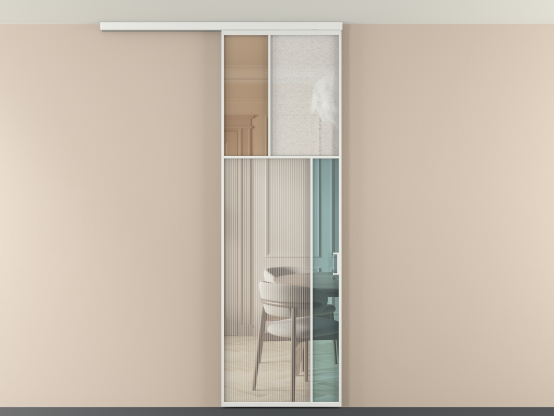 Во всех алюминиевых перегородках, независимо от типа установки, используется компланарный раздвижной механизм, благодаря которому декоративная крышка и полотно находятся в одной плоскости.