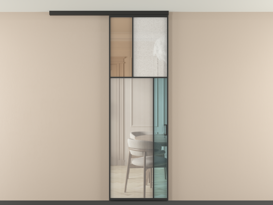 Во всех алюминиевых перегородках, независимо от типа установки, используется компланарный раздвижной механизм, благодаря которому декоративная крышка и полотно находятся в одной плоскости.