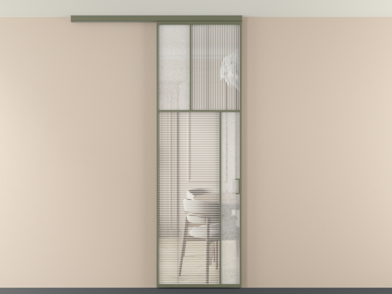Во всех алюминиевых перегородках, независимо от типа установки, используется компланарный раздвижной механизм, благодаря которому декоративная крышка и полотно находятся в одной плоскости.