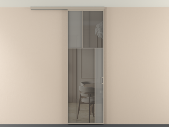 Во всех алюминиевых перегородках, независимо от типа установки, используется компланарный раздвижной механизм, благодаря которому декоративная крышка и полотно находятся в одной плоскости.