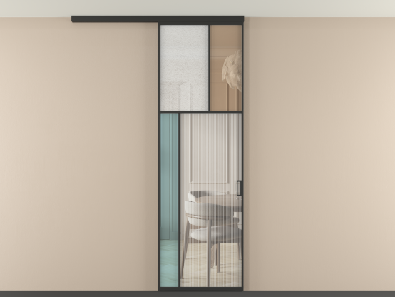 Во всех алюминиевых перегородках, независимо от типа установки, используется компланарный раздвижной механизм, благодаря которому декоративная крышка и полотно находятся в одной плоскости.