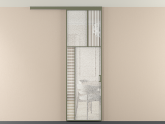 АЛПР 041.22. Алюминий оливковый тёмный Рифлёное стекло "Дюна" + Фактурное стекло "Лёд"