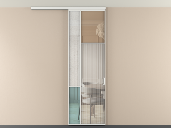 Во всех алюминиевых перегородках, независимо от типа установки, используется компланарный раздвижной механизм, благодаря которому декоративная крышка и полотно находятся в одной плоскости.
