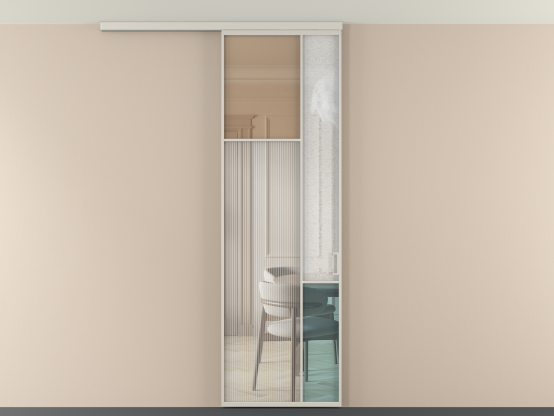 Во всех алюминиевых перегородках, независимо от типа установки, используется компланарный раздвижной механизм, благодаря которому декоративная крышка и полотно находятся в одной плоскости.