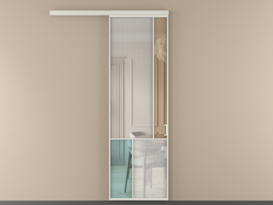 Во всех алюминиевых перегородках, независимо от типа установки, используется компланарный раздвижной механизм, благодаря которому декоративная крышка и полотно находятся в одной плоскости.